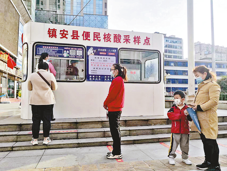 近日,镇安县在县中心广场等人口密集场所设立了8处便民核酸采样点,每天8时开放,以方便群众做核酸检测,受到广大群众一致好评。图为镇安县城中心广场的一处便民核酸采样点。