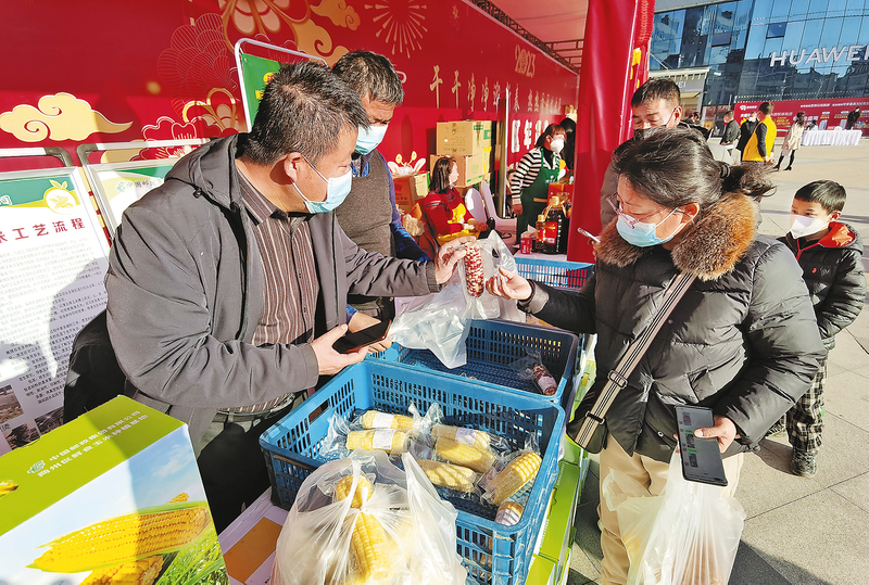 1月8日,商州区年货节在市区大都汇广场开幕。本次年货节吸引了30多家特色商户参与,不仅线下销售火爆,现场更有多位网络主播进行线上直播带货促销,营造出干干净净迎新春、热热闹闹过大年的喜庆氛围。(本报记者 杨 鑫 摄)