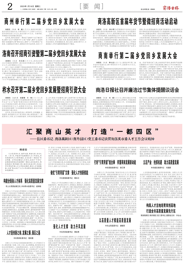汇聚商山英才 打造“一都四区”