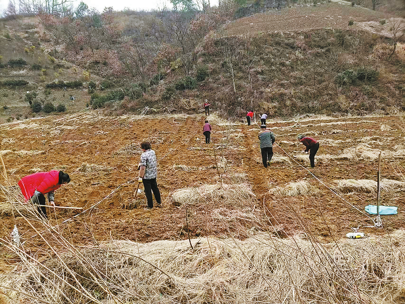 近期,商南县试马镇大坪村发展蔬菜基地50亩,将种植土豆、水果玉米、红薯、油菜等,带动附近村民30人就业。(本报记者 南 玺 摄)