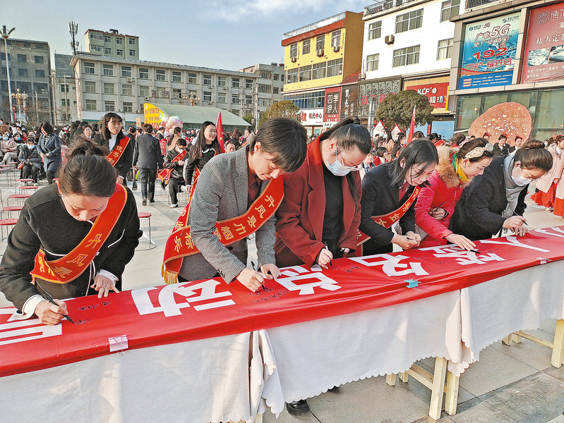 3月3日,丹凤县妇联等单位在县中心广场举行“礼赞二十大·巾帼绽芳华”纪念国际妇女节暨巾帼风采展活动,表彰奖励文明家庭等先进典型,充分展示新时代女性昂扬向上、奋发有为的良好风貌,引导鼓励广大女性积极投身乡村振兴火热实践。 (本报通讯员 樊利仁 摄)
