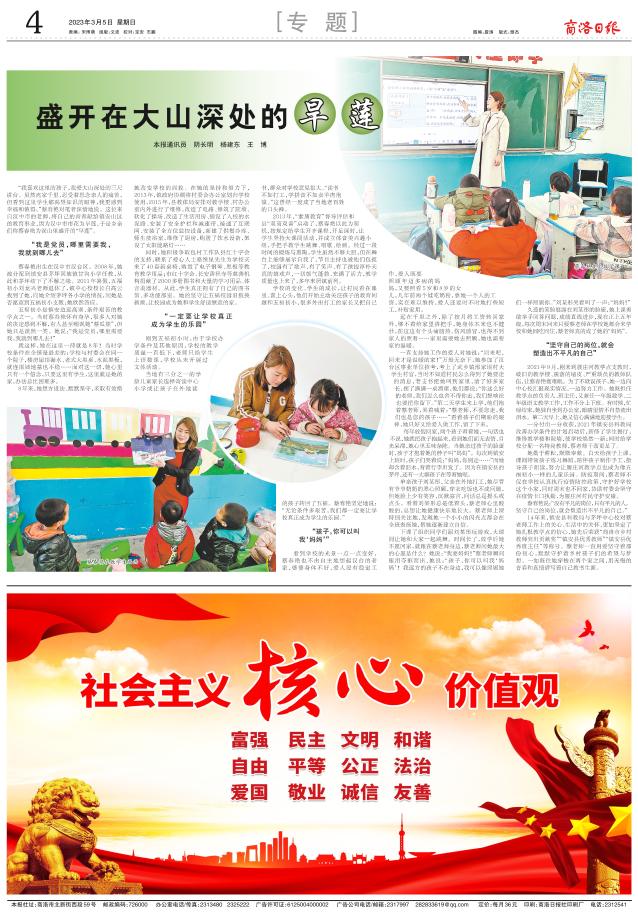 蔡春艳在教学生画画“我喜欢这里的孩子,我爱大山深处的三尺讲台。虽然离家千里,忍受着思念亲人的痛苦,但看到这里学生那渴望知识的眼神,我更感到幸福和值得。”蔡春艳对笔者深情地说。这位来自汉中市的老师,将自己的青春献给镇安山区的教育事业,因为汉中市市花为旱莲,于是乡亲们称蔡春艳为深山里盛开的“旱莲”。