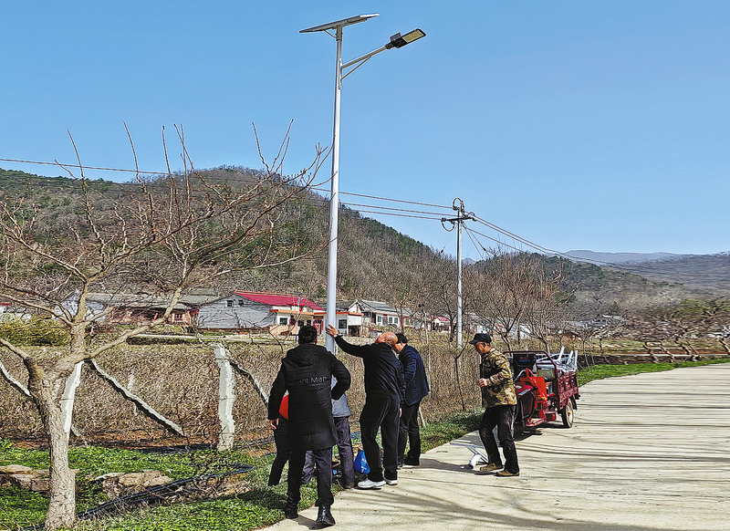 近期,洛南县巡检镇黑彰村在公路主干道和产业基地边安装路灯,基本实现路灯全覆盖。此次路灯安装项目共计投入15万多元,安装路灯共50盏,受益村民278户987人。 (本报通讯员 郝鑫鹏 摄)