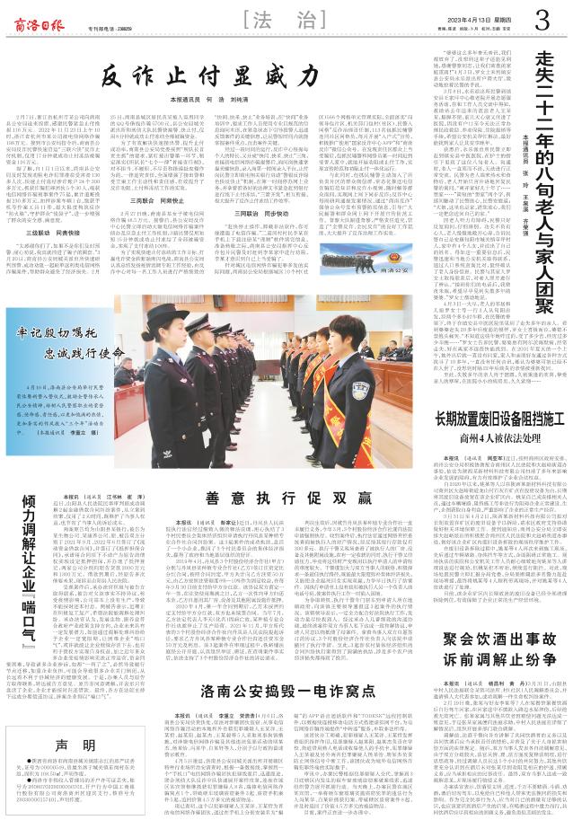 本报讯 (通讯员 彭家让)近日,丹凤县人民法院执行法官经过细致入微的释法说理,用心执结了3个村民委员会集体经济组织申请执行丹凤县某种植专业合作社合同纠纷案。这3起案件的成功执结,盘活了一个小企业,挽回了3个村民委员会的集体经济损失,赢得了政府和当地基层组织的好评。