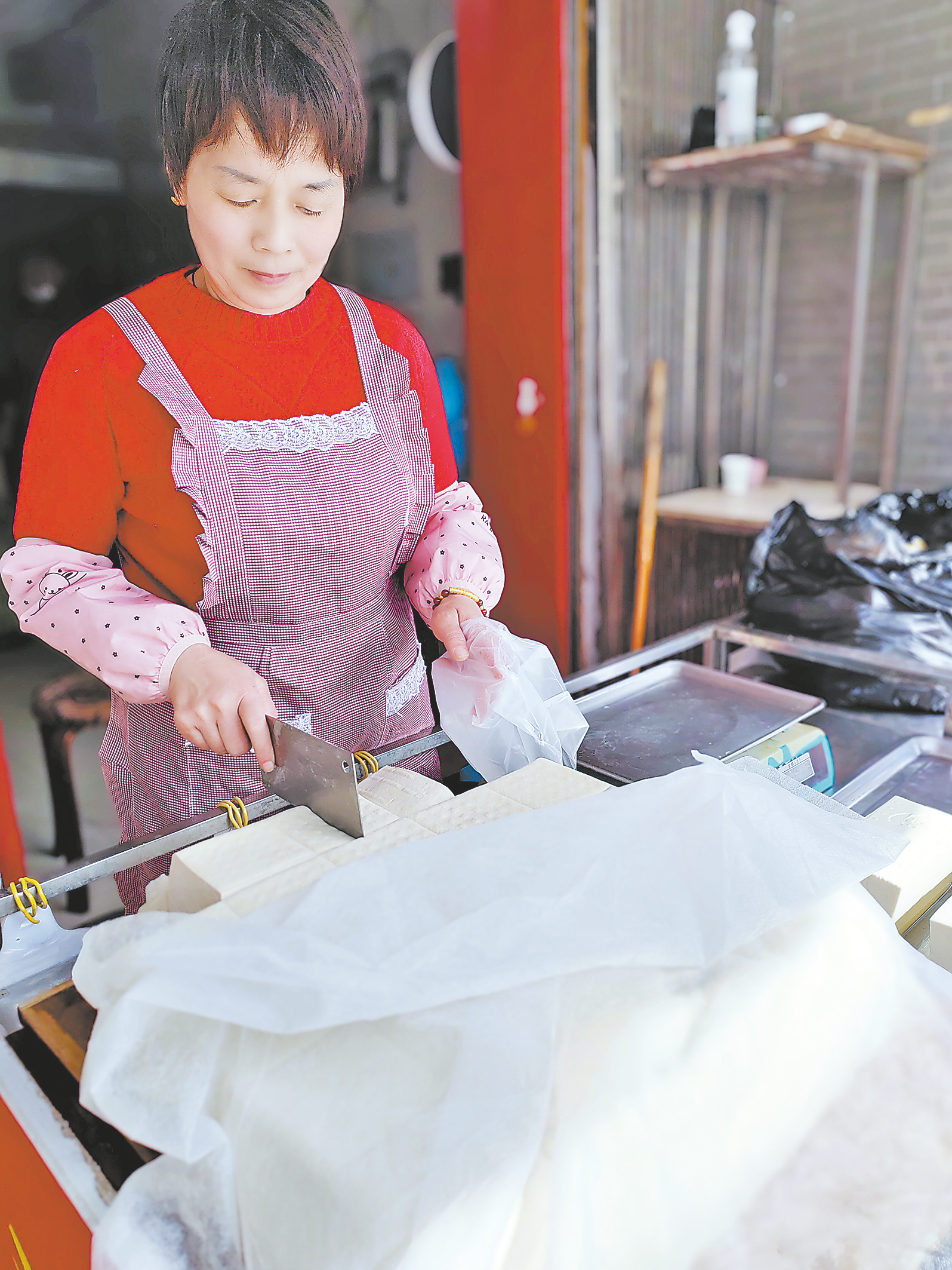 王玉芳给顾客称豆腐