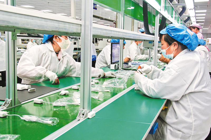 近日,年产三千万台(套)工业电源及消费电源全产业链项目生产车间内,工人们正在忙碌着。该项目是山阳县委、县政府围绕打造电子信息百亿级产业集群目标,从东莞引进的电子信息延链强链项目,产品出口欧美、日韩等国,提供就业岗位八百多个,在经济发展和群众就业上发挥了积极作用。(本报记者 余 婷 摄)