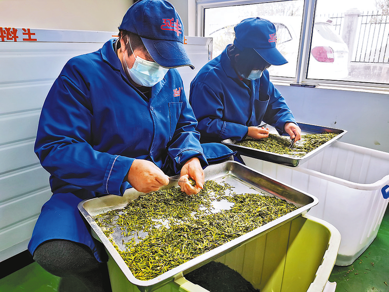 4月8日,山阳县延丰茶厂的工人正在细心挑选刚刚制作完成的毛尖茶。延丰茶厂位于山阳县延坪镇,该地昼夜温差大,水质优良,生产的高山茶叶久负盛名,今年制作明前毛尖茶500公斤,产值近百万元,有效地带动了当地群众致富增收。 (本报记者 杨 鑫 摄)