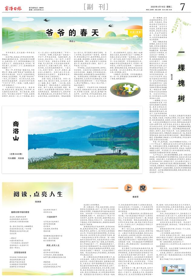 一棵槐树,它不与同类拥挤和竞争,只享受阳光雨露和大地的宽容,悠然自得地生长着。风刮过,它会向周围的杂草灌木招手;雨来了,它会为停留在树下的过客和放牛娃张伞。冬去春至,它随着岁月更换衣装,不孤独,不寂寞,不喧闹也不附和,多么自由!槐花开时,到处弥漫着花香,清清的、淡淡的,略有一点甜甜的味道。儿时记忆里的槐花是可以吃的,那种味道和花香早已渗入到骨子里,任岁月更迭,时光变迁,都无法更改。在20世纪60年代,家乡人食不果腹,用那棵槐树的槐花制成的食品成为家里的主食。村民用槐花拌面蒸疙瘩、蒸馒头、烙饼子,度过了饥荒之年。如今,把槐花用水煮熟再用油泼当菜吃,用槐花拌上面粉和大肉一起,蒸成香喷喷的麦饭,备受大城市食客们的喜爱。槐花是槐树的精灵,它装扮槐树,奉献爱心;它不哗众取宠,不追求荣华富贵,清清淡淡地生活着。