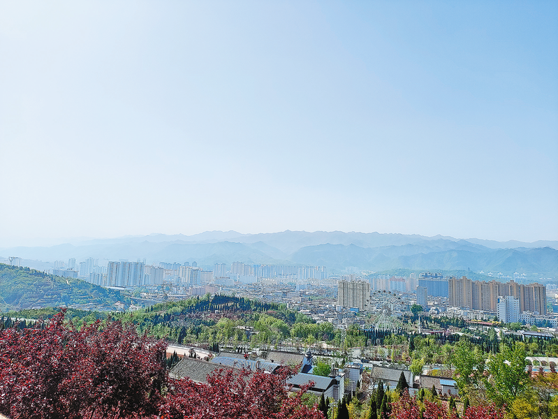 行驶在环城北路宽阔平直的大道上,映入眼帘的是绿水青山、红墙碧瓦、山花烂漫、莺歌燕舞,清新的空气沁人心脾,错落有致的建筑群、繁华喧闹的街区道路、熙熙攘攘的人群尽收眼底。
