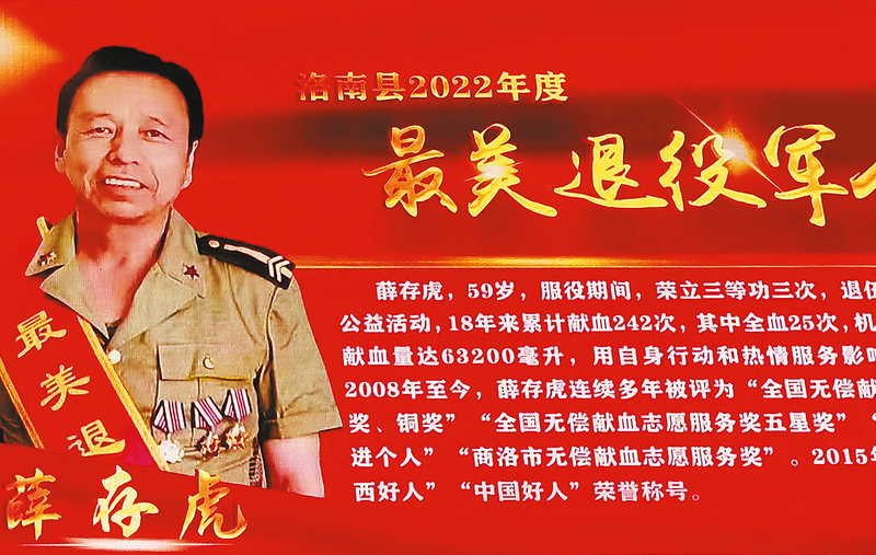2022年,洛南县政府授予薛存虎”最美退役军人“称号。