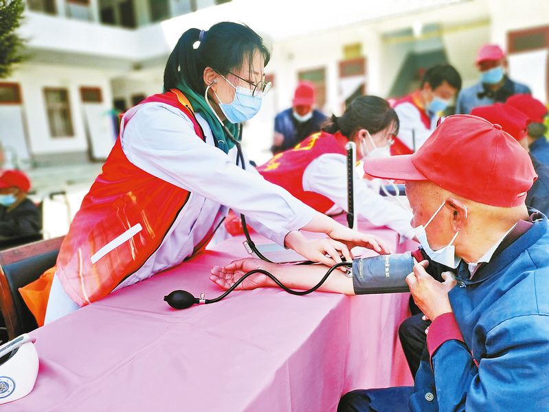 4月30日,商州区义工联合会与市中医医院在北宽坪敬老院开展志愿服务活动,志愿者给老人送去水果和奶制品,陪老人聊天,为他们包饺子,并进行义诊、赠药。 (本报通讯员 彭建文 摄)