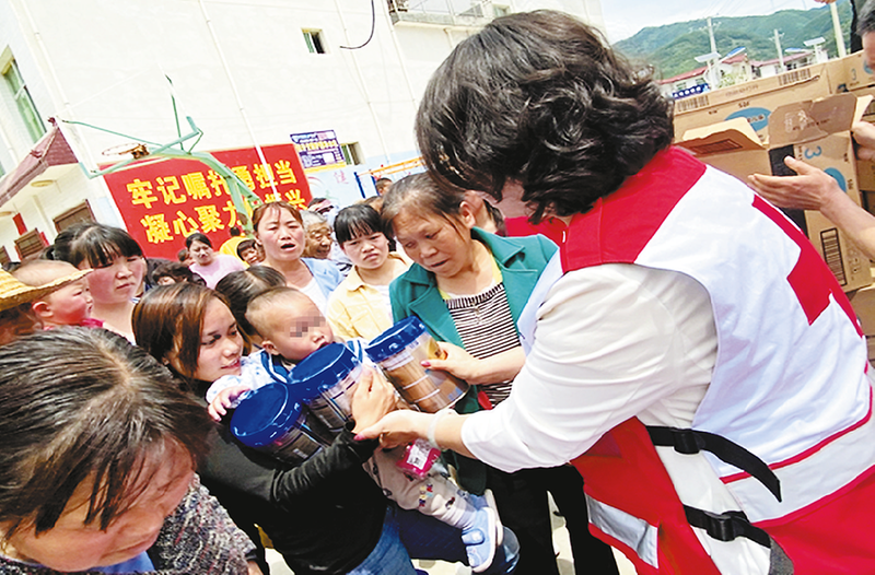 为儿童发放配方奶粉近年来,镇安县红十字会不断创新工作方法,开展形式多样的活动,稳步推进红十字事业。在新冠疫情防控和抗洪救灾中主动作为,积极开展募捐活动,筹集款物436.61万元,规范高效做好募捐款物接收管理工作。深入开展“5·8”世界红十字日、“5·12”防灾减灾日等宣传活动,开展“关爱留守儿童”、争做“红十字小帮手”等红十字青少年活动,多种形式向广大青少年宣传和普及红十字运动知识,让红十字文化浸润青少年,带动更多的爱心人士参与到红十字事业中来。积极宣传无偿献血、造血干细胞和遗体(器官)捐献工作,志愿登记人数逐年上升,红十字事业逐渐迈上新台阶。