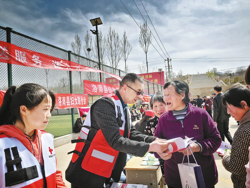 向群众宣传生命安全健康知识近年来,洛南县红十字会充分发挥人道领域助手作用,在抗洪救灾、疫情防控主战场上彰显担当作为,为保障和改善民生、守护群众生命健康作出了显著的成绩。全县连续两年遭遇特大暴雨洪涝灾害,在县委、县政府的领导和市红十字会的指导下,打好服务保障抗洪救灾主动仗,共接受捐赠款物3700多万元,有力地促进了全县经济社会发展,群众生产生活得到较快恢复。不断强化人道动员能力,积极打造以“政府政策引导,红会主体担责,镇办部门协同,社会共同参与”为特色的“博爱一日捐”筹资模式,逐渐形成品牌效应,三年来“一日捐”筹集资金53.59万元,救助125名大病群众和145名困难大学生。筹资49万元深入开展“博爱送万家”活动。面向特困人群开展人道救助活动,取得了明显社会成效。选树的洛南红十字曙光应急救援志愿服务队荣获全国红十字模范单位称号。