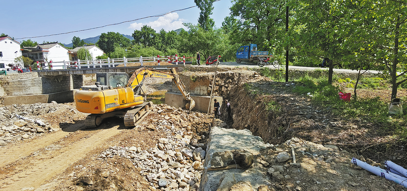 5月13日,施工人员按照相关技术规范在洛南县保安镇文峪村小文峪河流域水毁工地紧张施工,170多米的修复加固河堤工程即将竣工,为沿河两岸群众提供防汛安全保障,助力环境治理能力提升。 (本报通讯员 杨开让 摄)