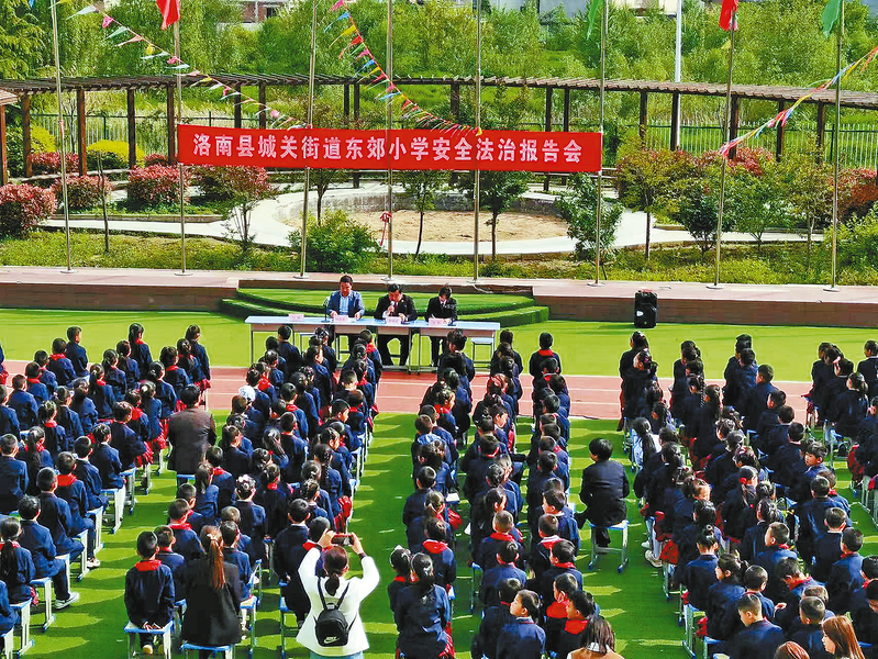 为更好地向青少年普及法律常识,提升青少年法治观念和自我保护意识,有效预防和防止犯罪的发生,切实维护校园治安环境持续稳定。近日,洛南县人民检察院检察官詹绪波受邀走进洛南县东郊小学,为学生送上了一堂生动的法治宣讲课,600多名师生聆听了报告会。(本报通讯员 谢 魏 摄)
