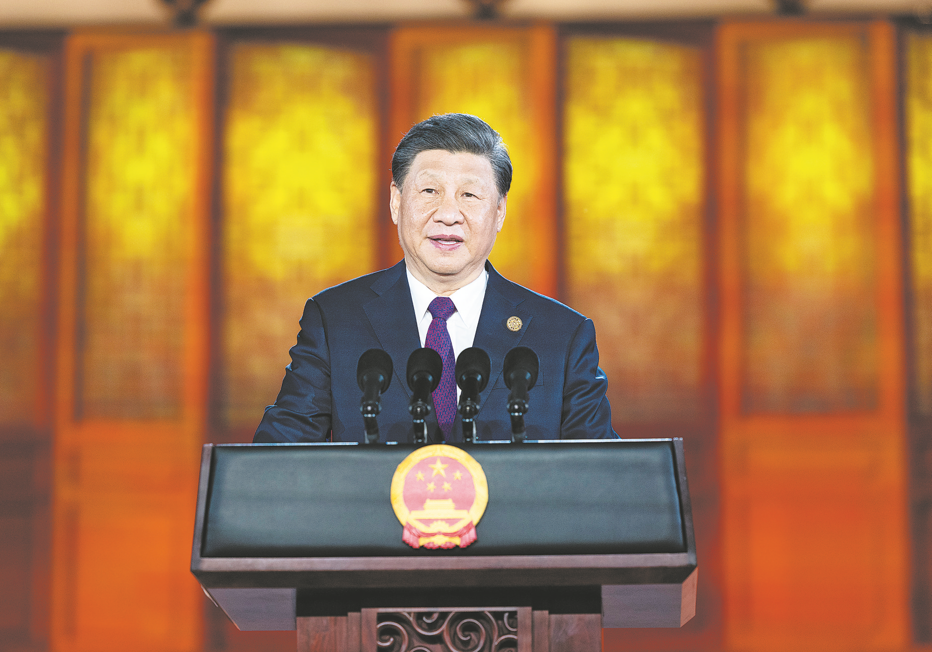 5月18日晚,国家主席习近平和夫人彭丽媛在陕西省西安市大唐芙蓉园为出席中国—中亚峰会的中亚国家元首夫妇举行欢迎仪式和欢迎宴会。宴会后,习近平夫妇同贵宾们共同观看中国同中亚国家人民文化艺术年暨中国—中亚青年艺术节开幕式演出。这是习近平发表欢迎致辞,代表中国政府和中国人民热烈欢迎中亚各国元首。 (新华社记者 黄敬文 摄)