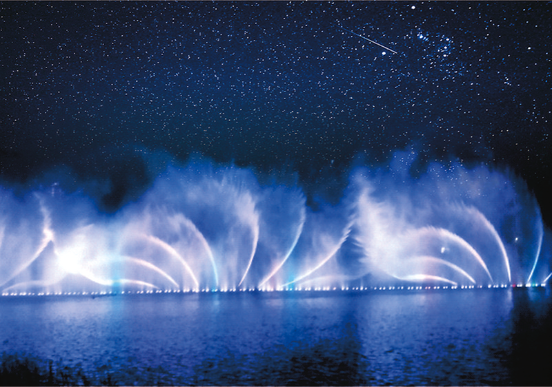夜幕降临,在武威重离子中心南湖上,水幕电影和水舞灯光秀开启了,温馨的画面与美妙的歌声,在如瀑的水面上展开,仿佛白昼的延续,也似生命的绽放……