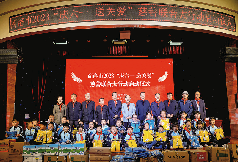 5月26日,市慈善协会联合市关工委、市教育局在商洛市特殊教育学校举行“庆六一、送关爱”活动,并向市特殊教育学校赠送洗手液、衣物、食品等价值10.5万余元的慰问品。 (本报记者 米子扬 摄)