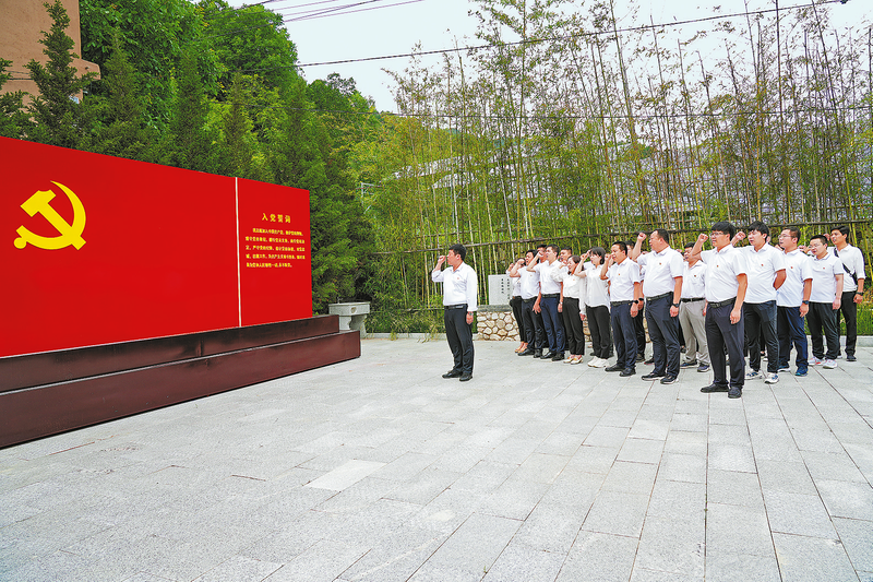在“七一”建党节即将到来之际,为庆祝建党102周年,传承党的优良传统,激励党员干部凝心聚力、提振精神,连日来,我市各地各部门党组织纷纷开展形式多样、丰富多彩的庆祝活动。图为丹凤县竹林关镇机关党支部组织全体党员重温入党誓词。(本报通讯员 雷明欣 摄)
