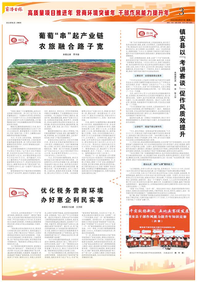 周龙说:“下一步,我们将深入学习贯彻习近平总书记关于农业农村工作的重要指示精神,全面落实党中央决策部署和省、市、县委工作要求,围绕‘三个年’活动,持续推动产业发展,多方整合资源,抓好业态转型升级,成立镇村新业态公司,争取‘双储林’等项目落地,全力推进万亩葡萄基地建设,力争在年底前完成3000亩新建园任务,为我市高质量发展贡献丹凤力量。”