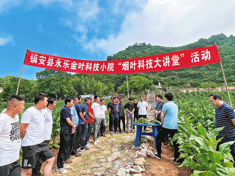 近日,商洛市烟草专卖局(公司)镇安县局(分公司)积极践行“科技兴烟”战略,依托镇安永乐金叶科技小院专家平台,邀请刘伟等专家深入安山村烤烟科技示范园,开展“烟叶科技大讲堂”专题知识培训,为烟叶提质、烟农增收提供技术支撑。 (本报通讯员 杨青玺 摄)