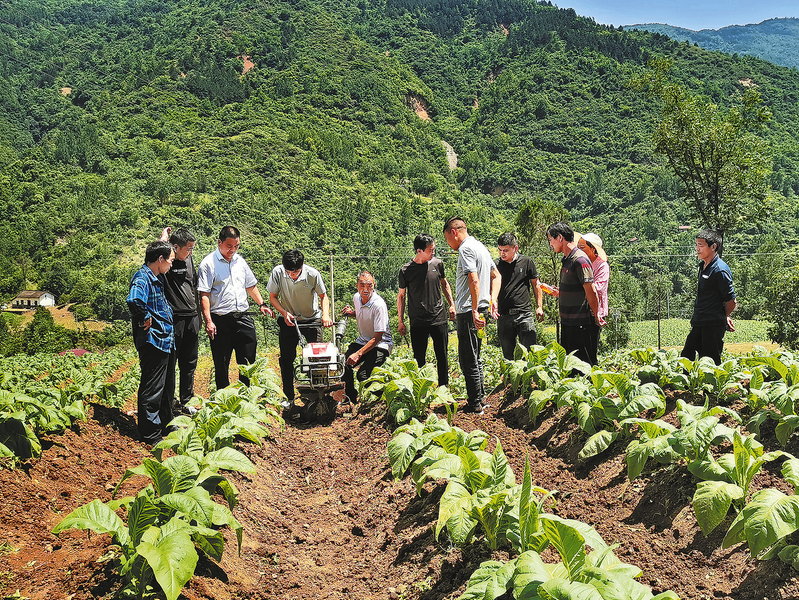 2023年,镇安县局(分公司)通过将烟田破除田埂、归整成片、烟田机耕路建设等措施落实,为烟田宜机化作业创造良好条件;通过动员开展挖掘机冬深翻、种植油菜翻压绿肥等措施,持续改良土壤、培肥地力;根据小型起垄机、中耕管理机的农机规格微调株行距,推广适当“远行距、近株距”新技术,满足“微调农艺适应机械作业”技术需求。通过以上新技术、新工艺的落实,实现烟叶生产亩均用工从22个降低到16个以内,同时实现了全县烟田规模化水平及烟田科管水平的全面提升。