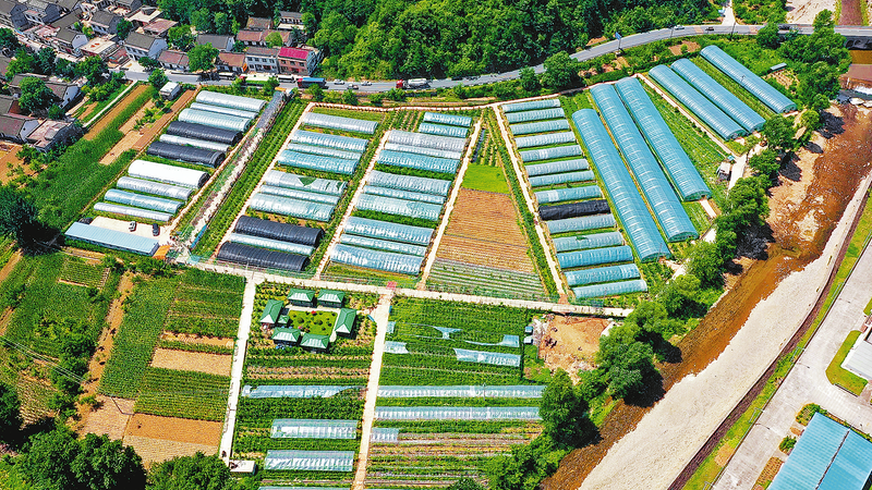 “盛泽园”是商州区按照“农业产业化、绿色化、景区化、品牌化”发展思路提升改造的新型农业产业化园区。在建设过程中,通过“专家联支部,支部建园区,园区聚能人,能人兴产业,产业带农户,农户促振兴”的方式,推动“菌蔬轮作、菌渣堆肥、菌汤研发、药材种植及休闲体验”转型,建成“林下有药、树下有菜、菌蔬轮作、亲子体验”的功能型、集约型、体验型、综合型休闲农业和乡村旅游产业。图为7月17日“盛泽园”航拍图。