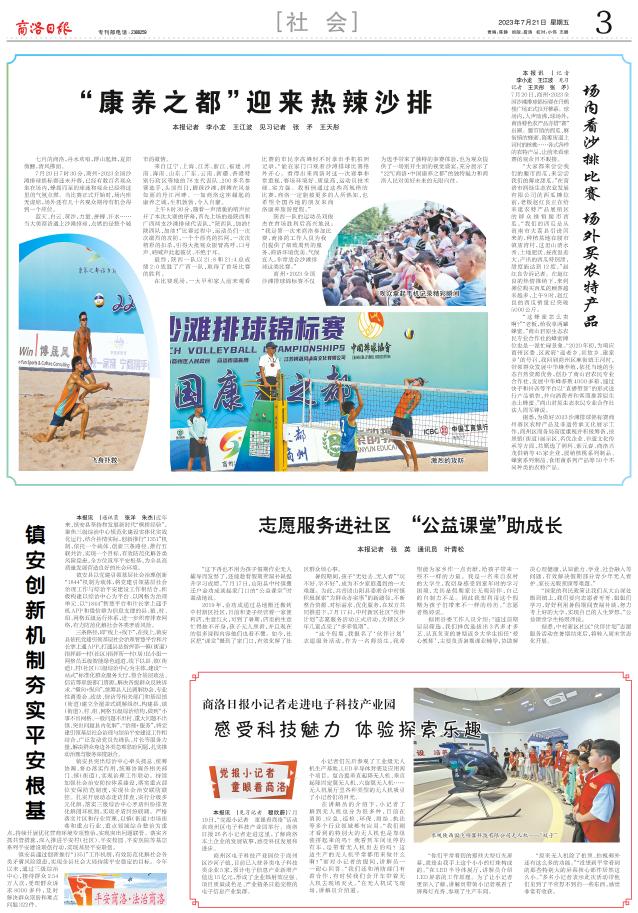 本报讯 (记者李小龙 王江波 见习记者 王天彤 张 矛)7月20日,商州·2023全国沙滩排球锦标赛在丹鹤楼广场正式拉开帷幕。球场内,人声鼎沸,球场外,商洛特色农产品亦借“赛”出圈。腰市镇的西瓜、麻街镇的蜂蜜、陈塬街道上河村的核桃……各式各样的农特产品,让前来看球赛的观众目不暇接。