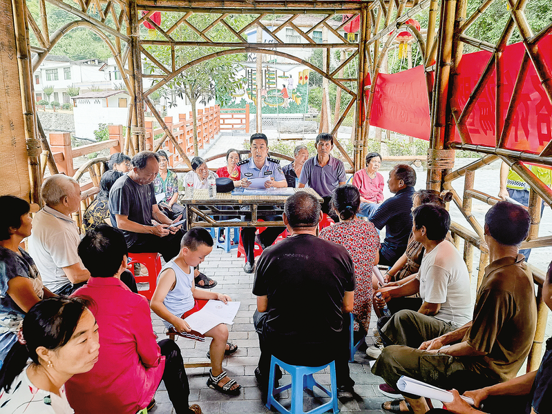 为进一步提高群众的防诈骗意识,近日,镇安县达仁镇联合县公安局达仁派出所组成反诈宣传队9支57人,深入开展防范电信网络诈骗犯罪“进社区、进农村、进家庭、进学校、进企业”的“五进”活动,守牢人民群众的“钱袋子”。(本报通讯员 徐祥栋 摄)
