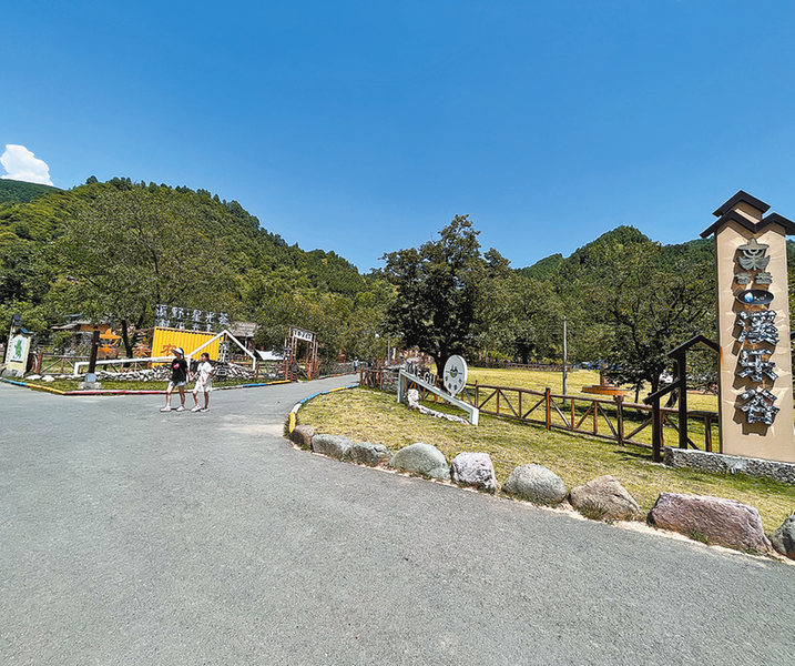 在洛南县保安镇北斗村亲农·溪乐谷景区,山谷里的流水清澈见底,游客带着孩子在水里尽情地纳凉玩耍。露营基地的帐篷下,游客在惬意地喝茶聊天。穿过露营基地,一栋栋金黄色的土墙老屋星罗棋布地散落在丛林间,土砖里夹杂着干稻草,与黏性极强的黄泥沙土凝固成一体,屋檐下挂着金灿灿的玉米,大门的两旁悬挂着古老的纸灯,原始的村落和古朴的民宿仿佛让人重新找回了儿时的家。