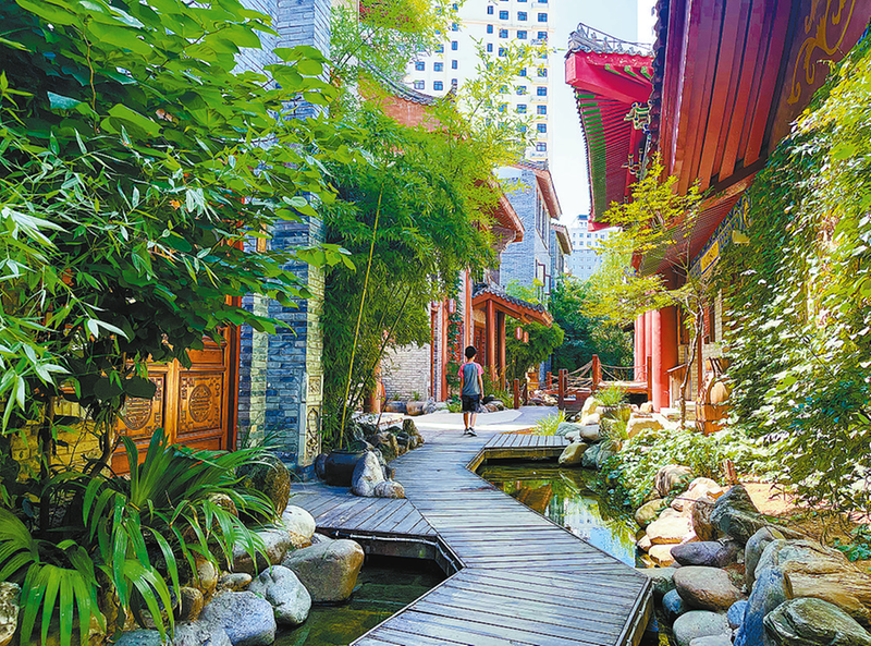 走进民宿街区小院,石板路、小鱼塘、四季竹……典型的中式庭院风格,院落虽然不大,但各类设施齐全,移步换景,别有韵味。放眼望去,小溪边熙熙攘攘的游客或驻足观赏,或拍照留影。