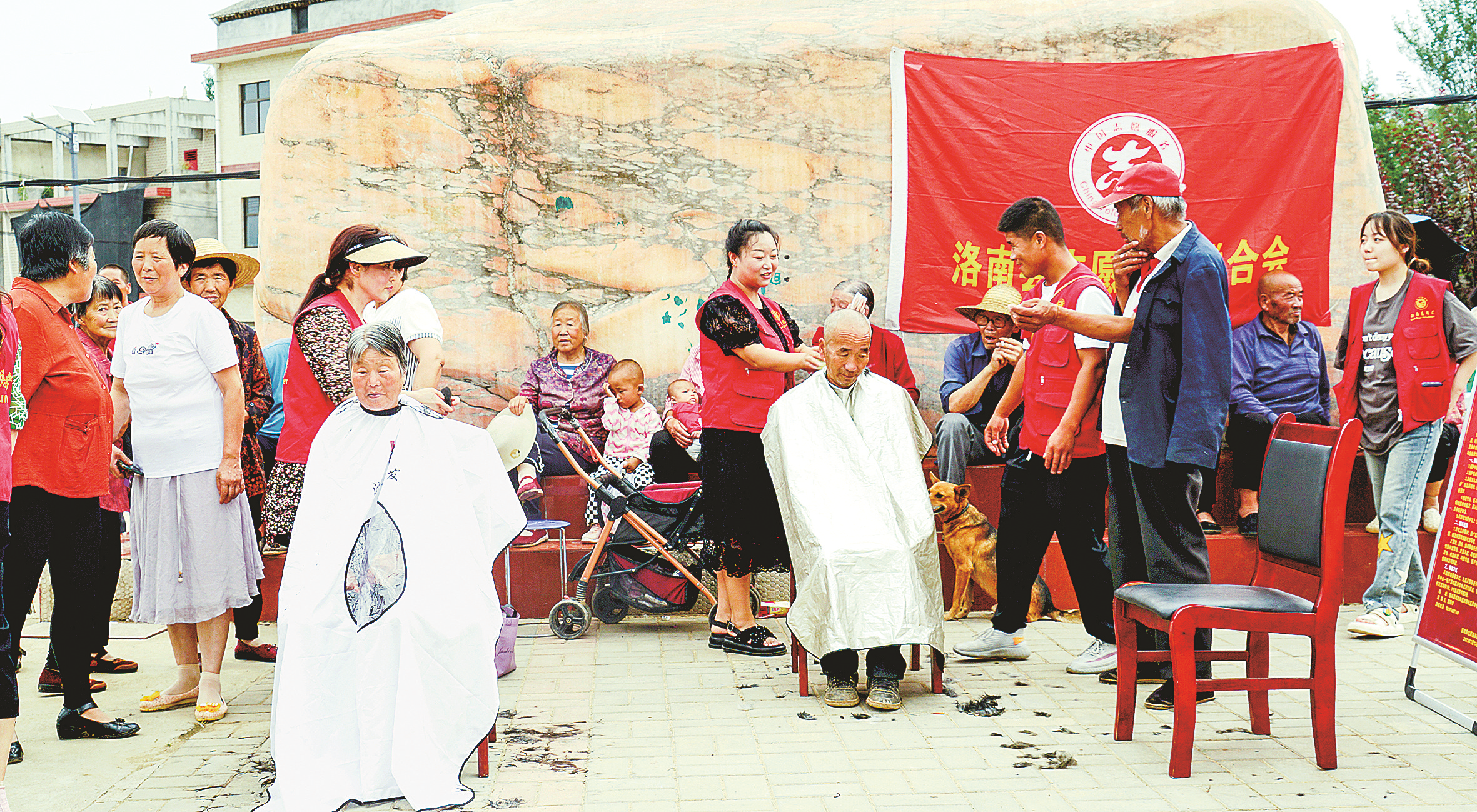 8月3日,洛南县开展“乡音传党音·声声润民心”主题文明实践活动,各级文明实践宣讲团队志愿者采取“诵、讲、演、唱、助”等形式,用群众听得懂的乡音土语,诵读经典金句、宣传党的政策、宣讲身边好人、倡树文明新风,并为民办实事,凝聚起干群爱我洛南、同奔小康的强大力量。图为志愿者为老年人义务理发。