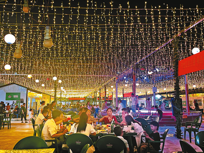 今年以来,山阳县持续推动夜间经济品质不断提升,加速布局新场景、新业态,激发消费潜能,在县人民广场西侧规划建成丰阳美食城,吸引了众多商户进驻,也点燃了县城的烟火气。 (本报记者 张 英 摄)