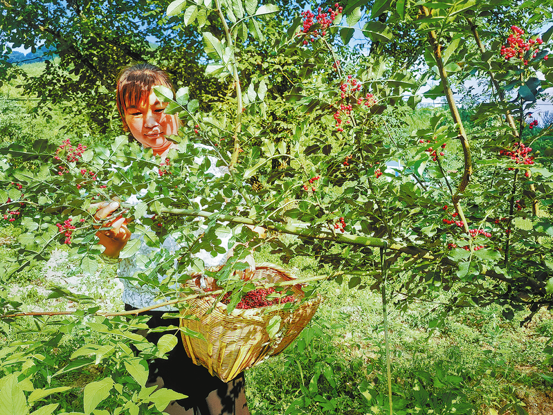 连日来,商南县十里坪镇的花椒基地迎来了采收季,村民们抢抓农时摘果、装筐。目前,十里坪镇在红岩村、碾子坪村种植花椒1100亩,并将不断延伸产业链条,着力把花椒产业打造成为朝阳产业。 (本报通讯员 张 英 摄)