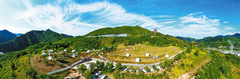 近年来,我市各地以良好的生态环境为基础,不断完善配套设施,将生态资源转换为“美丽经济”,结合当地的山水人文资源,积极打造田园综合体,推进乡村振兴。图为9月2日拍摄的丹凤县竹林关镇洲河北村枫林露营基地。(本报通讯员 杜文龙 摄)