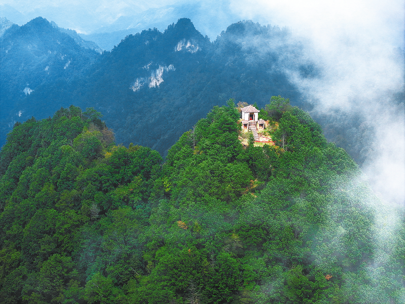 九龙鼎寺位于月河镇太白村、八盘村和云盖寺镇西洞村交界的九龙山上。主峰海拔2130米,峰顶建有观音寺1座,万山朝宗金顶,呈九龙聚首态势。