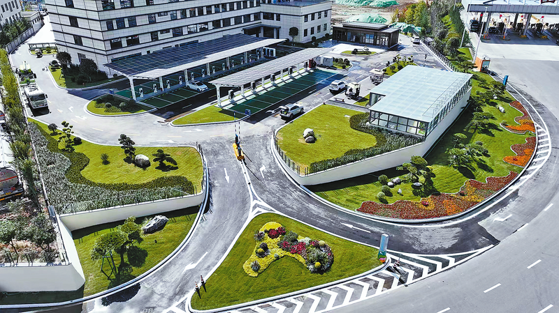 近年来,山阳县不断提升城市品质,让城市融入大自然,相继建成口袋公园、带状公园八个,城区造绿面积达三十五万平方米。图为与口袋公园融为一体的山阳县新型光储智能充电站。 (本报记者 米子扬 摄)
