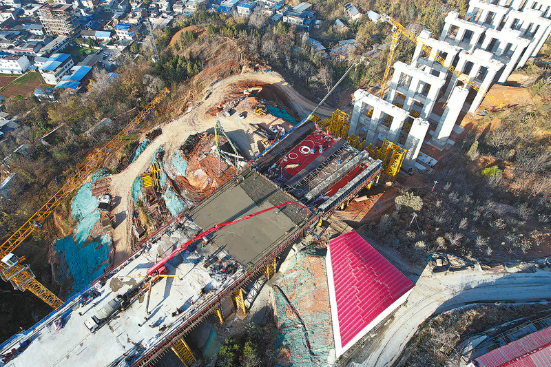 12月7日,随着最后一方混凝土注入梁体,西十高铁(陕西段)全线方量最大的支架现浇道岔连续梁顺利浇筑完成,标志着西十高铁建设取得突破性进展,为后续无砟轨道的铺设奠定了坚实的基础。(本报通讯员 范依楠 摄)