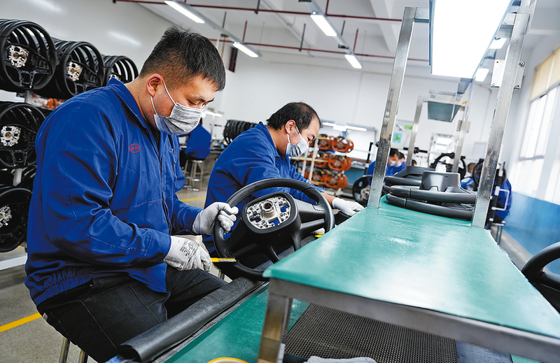 在商洛比亚迪有限公司汽车零部件产业园二期项目,工人们正紧张有序地忙碌着,汽车线束、安全气囊、方向盘等一个个汽车零部件完成生产后被运往仓库。