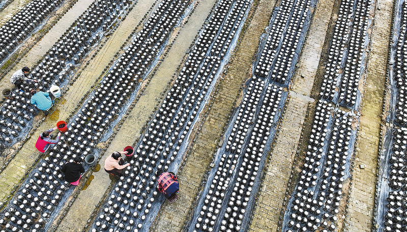 金米村村民在采摘木栽木耳。小木耳长成大产业,成为带动村民致富的“金钥匙”。陶明 汪艳 方立