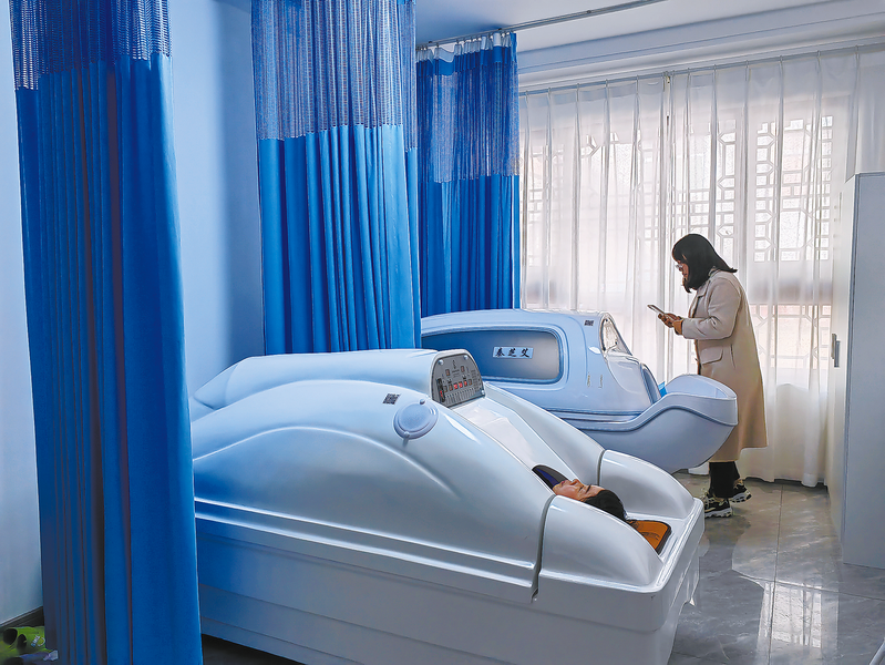 11月15日,顾客在商洛秦芝艾生物科技有限公司体验艾灸能量仓理疗。