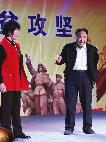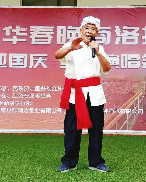 2015年,吴孝明在洛南县“迎国庆”活动中表演快板。(资料图片)