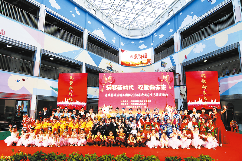 为进一步加强和改进新时代园所艺术教育工作,提升幼师文化艺术素养,展示素质教育成果,12月11日,丹凤县教育系统城区幼儿园组举行迎新年文艺展演,本次活动以“筑梦新时代 欢歌向未来”为主题,来自城区6所幼儿园的300名幼师通过舞蹈、合唱、情景剧等节目迎接新年。 (本报通讯员 索 健 摄)