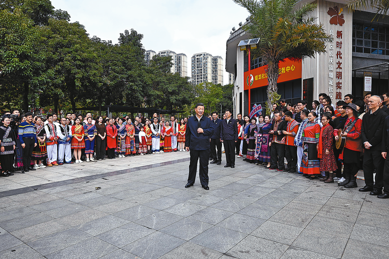 12月14日至15日,中共中央总书记、国家主席、中央军委主席习近平在广西考察。这是14日上午,习近平在南宁市良庆区蟠龙社区考察时,同社区各族群众亲切交流。 (新华社记者 谢环驰 摄)
