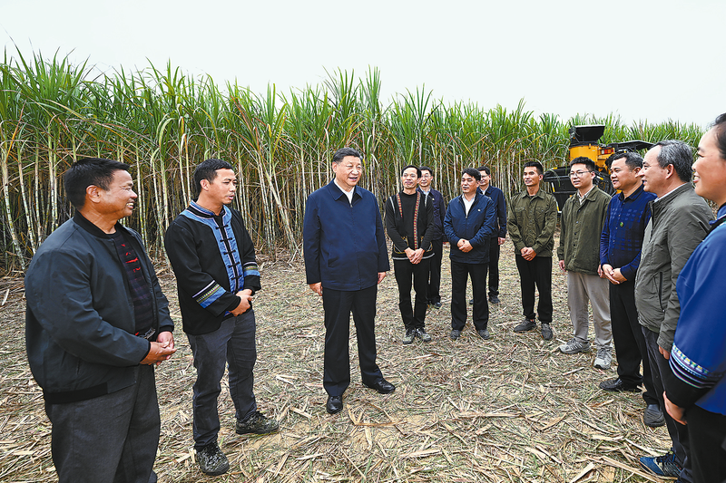 12月14日至15日,中共中央总书记、国家主席、中央军委主席习近平在广西考察。这是14日下午,习近平在来宾市国家现代农业产业园黄安优质“双高”糖料蔗基地考察时,同蔗农、农机手和农技人员亲切交流。 (新华社记者 谢环驰 摄)新华社南宁12月15日电 中共中央总书记、国家主席、中央军委主席习近平近日在广西考察时强调,广西要完整、准确、全面贯彻新发展理念,牢牢把握高质量发展这个首要任务和构建新发展格局这个战略任务,发挥自身优势,以铸牢中华民族共同体意识为主线,解放思想、创新求变,向海图强、开放发展,努力在推动边疆民族地区高质量发展上展现更大作为,在建设新时代中国特色社会主义壮美广西上不断取得新进展,奋力谱写中国式现代化广西篇章。
