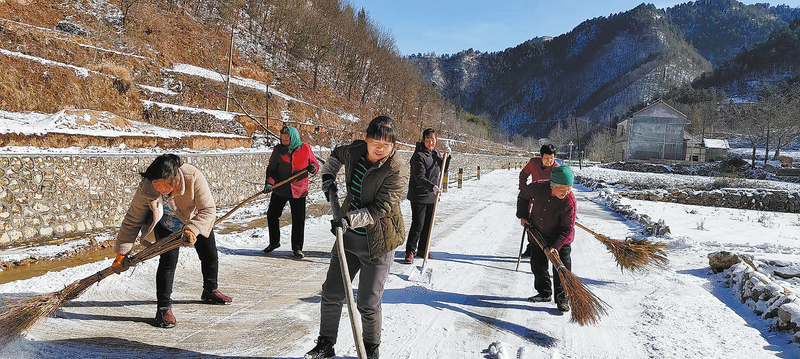 十二月十五日,商州区北宽坪镇出现了降温降雪冰冻大风极端天气。十六日,北宽坪镇立即启动应急预案,第一时间组织机关干部、村(社区)党员干部群众和志愿者全力开展清雪除冰作业。大家不畏严寒,干劲十足,积极主动,相互配合,齐心协力,全部铲除了辖区主要干道、通村通组路、公共场所等重点区域的积雪和冰层,全镇区域内主干道路畅通无阻,保障了群众出行安全。(本报讯通讯员 彭建文 摄)