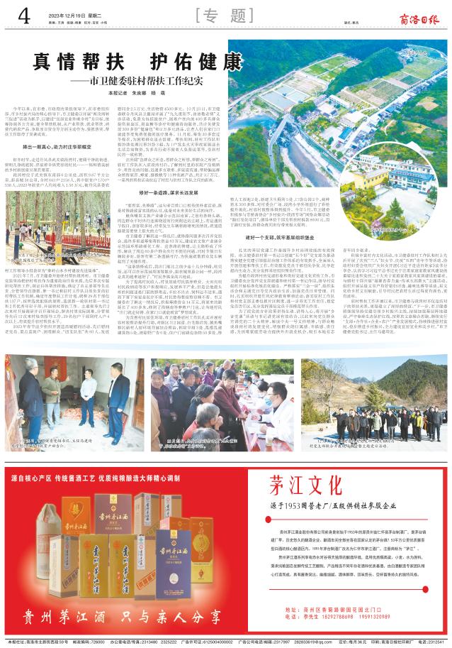 2023年春节前夕组织开展送温暖慰问活动,先后慰问老党员、重点监测户、困难群众、“四支队伍”共80人,发放慰问金2.5万元、生活物资4500多元。10月23日,市卫健委联合丹凤县卫健局开展了“九九重阳节,浓浓敬老情”义诊活动,免费为包括脱贫户、困难户在内的400多名群众提供量血压、测血糖等诊疗和健康咨询服务,共计免费发放300多份“健康包”和2万多元药品,让老人们在家门口就能享受免费便捷的医疗服务。11月底,筹集30多套过冬棉衣,为困难群众送去温暖。帮扶期间,驻村工作队积极协助处理民事纠纷3起,为1户发生火灾事故家庭送去生活急需物资,为多名行动不便老人免费送菜等,受到村民的一致称赞。