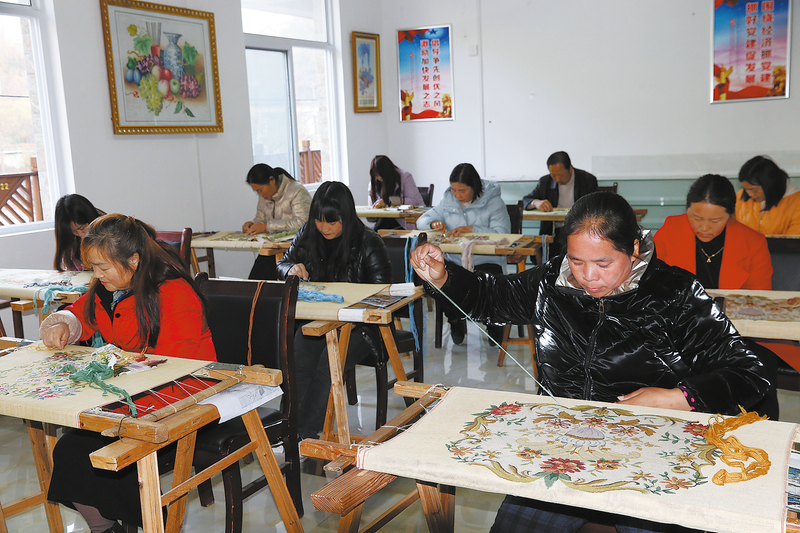 如今,在葛良慧的带领下,一位位绣娘可以背着娃、绣着花、养活家,足不出户就能干出一份稳定的“小事业”。