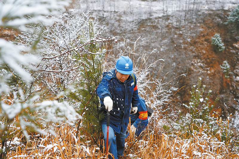 “大家要认真检查线路是否有覆冰现象,不能遗漏一处隐患。同时,也要多加注意安全,防止脚底打滑。”12月11日,在被积雪覆盖的秦岭山涧,商洛供电公司输电运检中心工作人员和党员突击队正顶着寒风,对330千伏咸鹤Ⅰ、Ⅱ线开展保电特巡。
