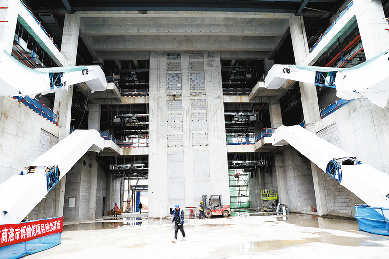 秦岭博物馆项目位于市区西大门,占地108亩,建筑面积4.4万平方米,2021年9月启动建设,目前建筑主体全面封顶,秦岭博物馆广场已经建成向市民开放。秦岭博物馆建筑外形“山水玉璋”灵感来自本地出土的国家一级文物“夏代玉牙璋”,中轴线隐含秦代“商字瓦当”,建筑涵盖了文化性、商业性、时尚感和艺术感,在商洛城市现代化进程中具有文化地标的性质。